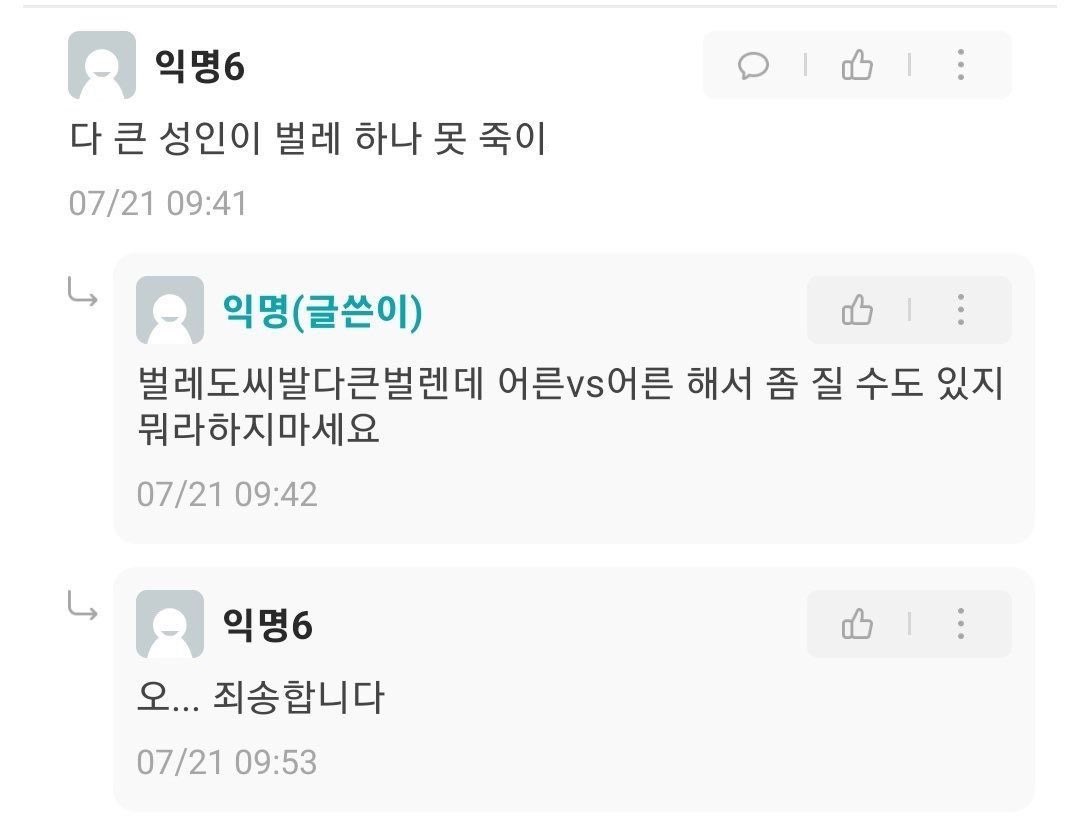 얘한테 맞아도 아프겠지만 쌍방으로 싸우면 벌금으로 엄청쎄게 더맞겠군 | 25.09.02 23:02 | | |