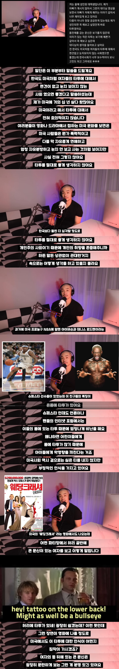 본인이 문신 하는것 -> 개인의 자유 문신한 사람을 판단하는것 -> 개인의 자유