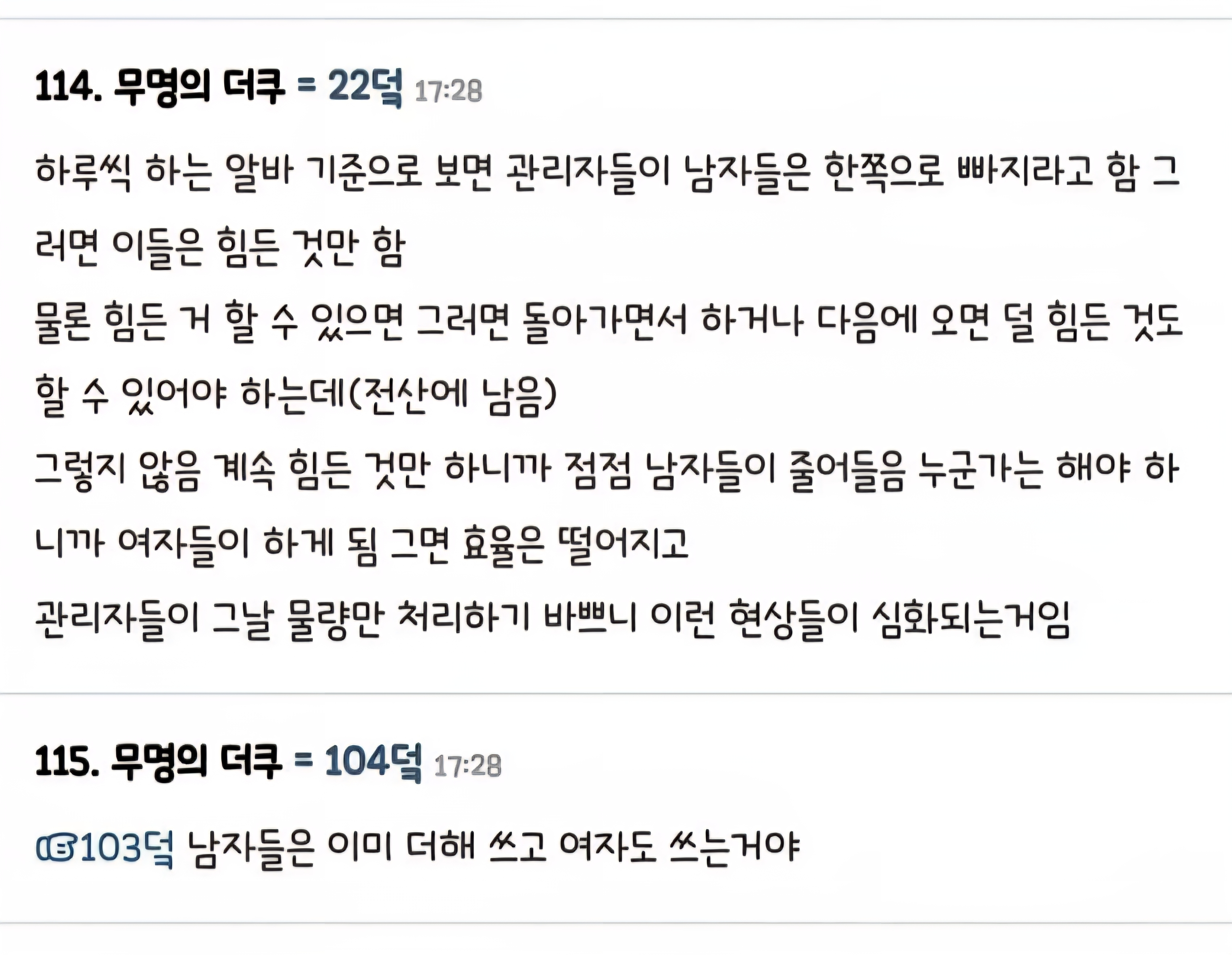 이상론도 아님.. 동일임금 동일노동이 이상론인데, 애초에 동일한 일을 안하는데.. | 25.09.16 21:36 | | |