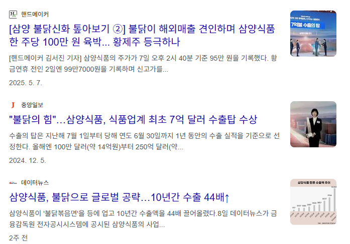 내가 한국 라면계를 무시하는게 아니고, 올려치기를 너무 하는 기사라서 하는 이야기. 게다가 울나라 수출이 10억 2천만달러라는데, 삼양 붉닭계열은 7억달러를 넘음.. 아직 기회를잡아야 될 단계지, 자뻑할 단계는 아니라는 거. | 25.09.22 17:59 | | |