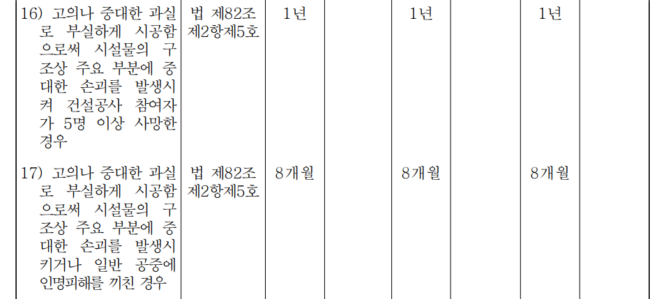 검단 지하주차장 붕괴는 인명피해가 없어서 16)은 불가능 주요부분에 중대한 손괴는 발생했으니 17)로 가면 8개월이 상한 | 25.09.27 13:33 | | |