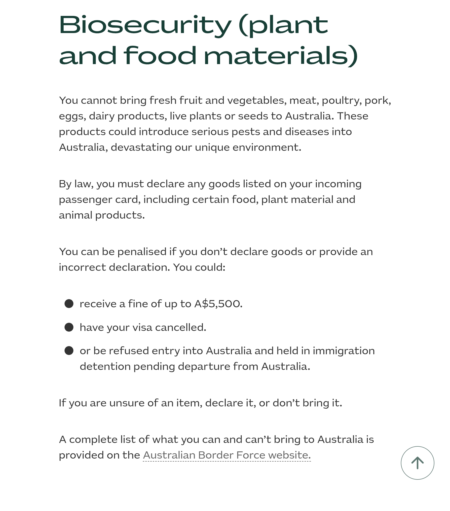 뉴질랜드 영주권자인 와이프 문의 결과 사전 신고되지 않은 음식물 반입은 무조건 벌금. 버린다고 해결 안되고 봐주지도 않는다 함. 호주도 비슷할 거라는 의견을 보면 구라는 아닐 겁니다 | 25.09.30 16:32 | | |