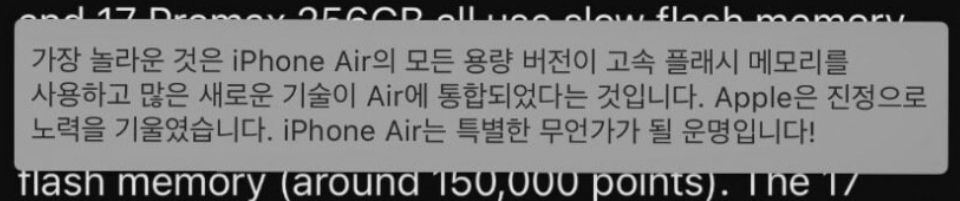 근데 그럼 다른 용량에 전부 고속 플래시라는 평가인 에어는 말이 안되지 않나. | 25.09.30 16:43 | | |