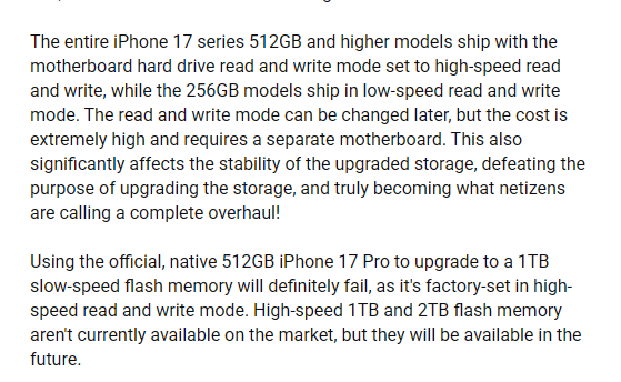 요약하면 256모델과 512모델의 읽기/쓰기 속도 차이가 심하네? -> 고속,저속 플래시 차이인가? -> 뚜따해서 256모델에 512모델의 플래시 메모리를 집어넣음 -> 오잉? 성능변화가 없네? -> 아 마더보드 단계에서 막아놓았구나! (출처 : https://www.youtube.com/@directorfeng-china/posts ) | 25.09.30 17:00 | | |