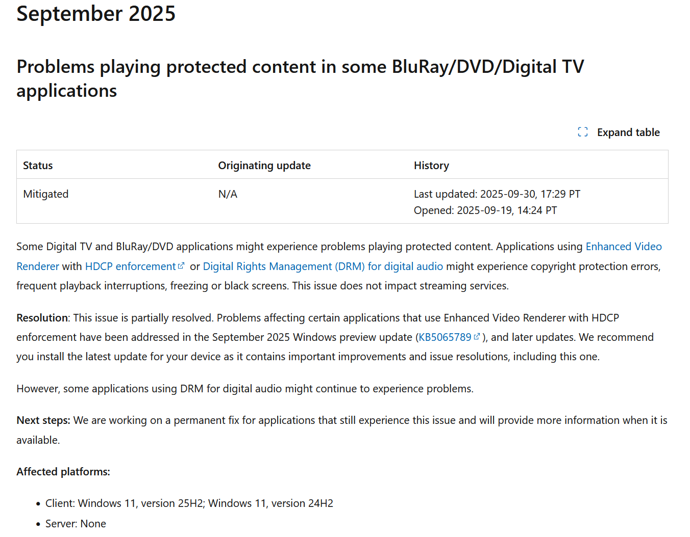 지금 26xxx 빌드에 동영상 DRM 버그 때문에 그런가보네 ㅋㅋ 다만 사람들이 가장 자주보는 스트리밍에는 그 버그 안나서 거의 문제없던데, DVD 같은 매체로 영상보면 저런 문제가 좀 생길꺼임 ㅋㅋ