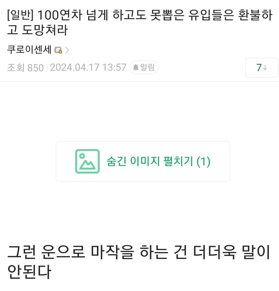 근데 솔직히 명방기준으로 한정캐릭이라한들 명함도 못먹은건 진짜 노력도 안한게 맞음. 일용직 한두번만 뛰어도 한정 명함은 먹을수있는데 그정도 노력도 안했으면 걍 걸러짐당하셔야지 | 25.10.09 15:32 | | |