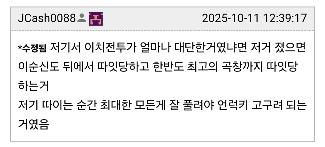 이순신은 초FM이라 권율이랑은 안맞을만함 | 25.10.11 13:52 | | |