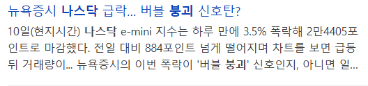 어제 미국 나스닥이 얼마나 쏟아진지 보면 기겁을 할걸 한국이면 코로나 재림 코스피 몰락 별에별 타이틀 붙었을거임 | 25.10.11 15:29 | | |