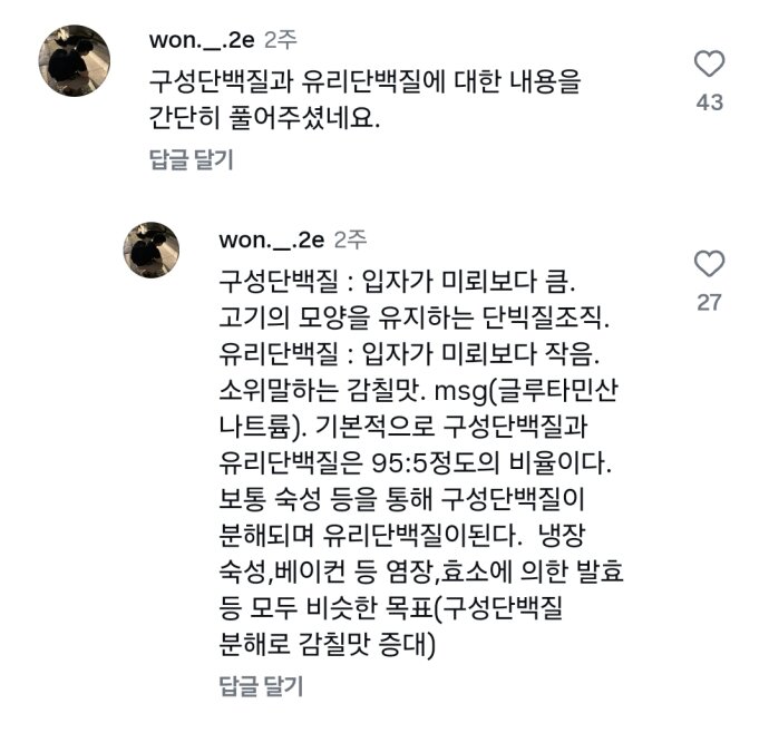 "생육회를 먹었을때 맛이 약하다" 육회랑 생고기는 다른데여???????????ㅋㅋㅋㅋㅋㅋㅋ 그리고 5년전 기사 가져와서 이겨 먹으려드시는데 씹는과정에 맛이 느껴지게 변해진다고 막짤 가져왓는데여?? 애초에 생고기 자체 맛이 없다라는 말이 이해가 안되심??? 진짜 이해능력이 떨어지는건지 쳐발려서 이겨먹으려는건지 모르겟는데 지방맛??? 아니 또 논점 비껴가시려는데 추해여 님은 5년전 기사면 저사람들도 알거고 저사람들도 그거 포함해 말해줘도 응 지방맛?ㅋㅋㅋㅋㅋㅋㅋㅋㅋㅋㅋㅋㅋㅋㅋㅋㅋㅋㅋㅋ 내가 지방맛 못느낀다고 햇음????? 아니 씹는과정에서 단백질 변형하면서 고기에 지방껴잇으면 지방 맛 나게죠 진짜 이겨 쳐먹으려고 발악하시는데ㅋㅋㅋㅋㅋㅋㅋㅋㅋㅋㅋㅋ | 25.10.14 19:31 | | |