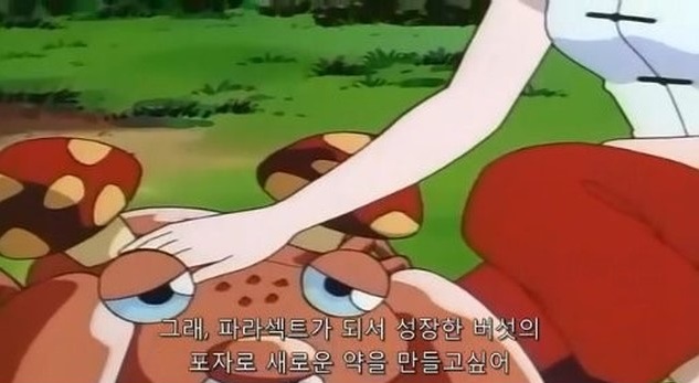 파라섹트로 진화를 거부하는 파라스에게 주인이 빨리 진화해서 커진 버섯을 약재로 써야 하니까 진화하라고 강요하고 결국 진화성공시켜서 기뻐하는 에피소드. 지우 일행은 파라스 죽은줄 모르고 덩달아 흐뭇해하는게 참 블랙한 | 25.10.17 14:23 | | |
