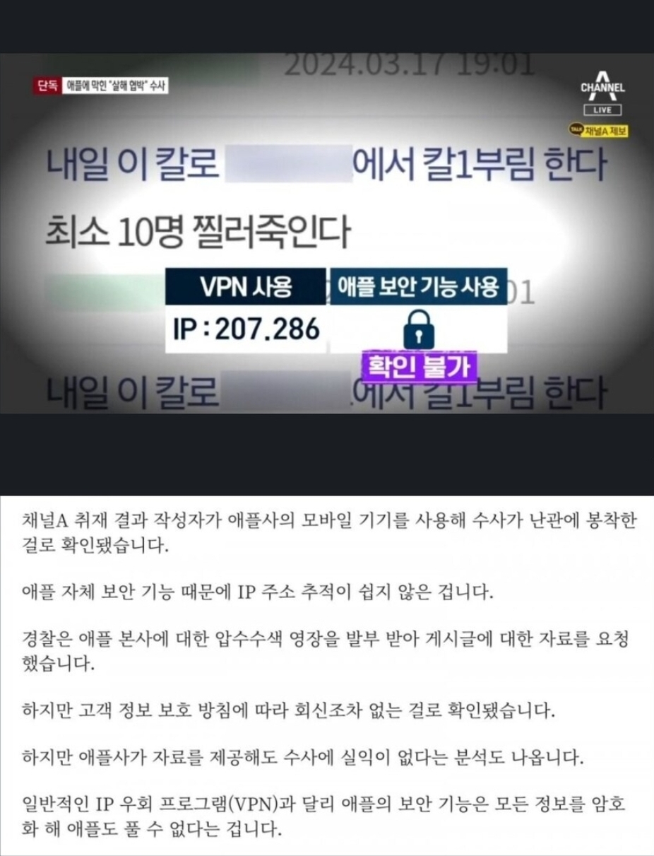 저런 테러면 수사협조 잘해주는데 모욕죄 사실적시명예훼손이런건 절대 협조 안해주긴함 | 25.10.17 18:53 | | |