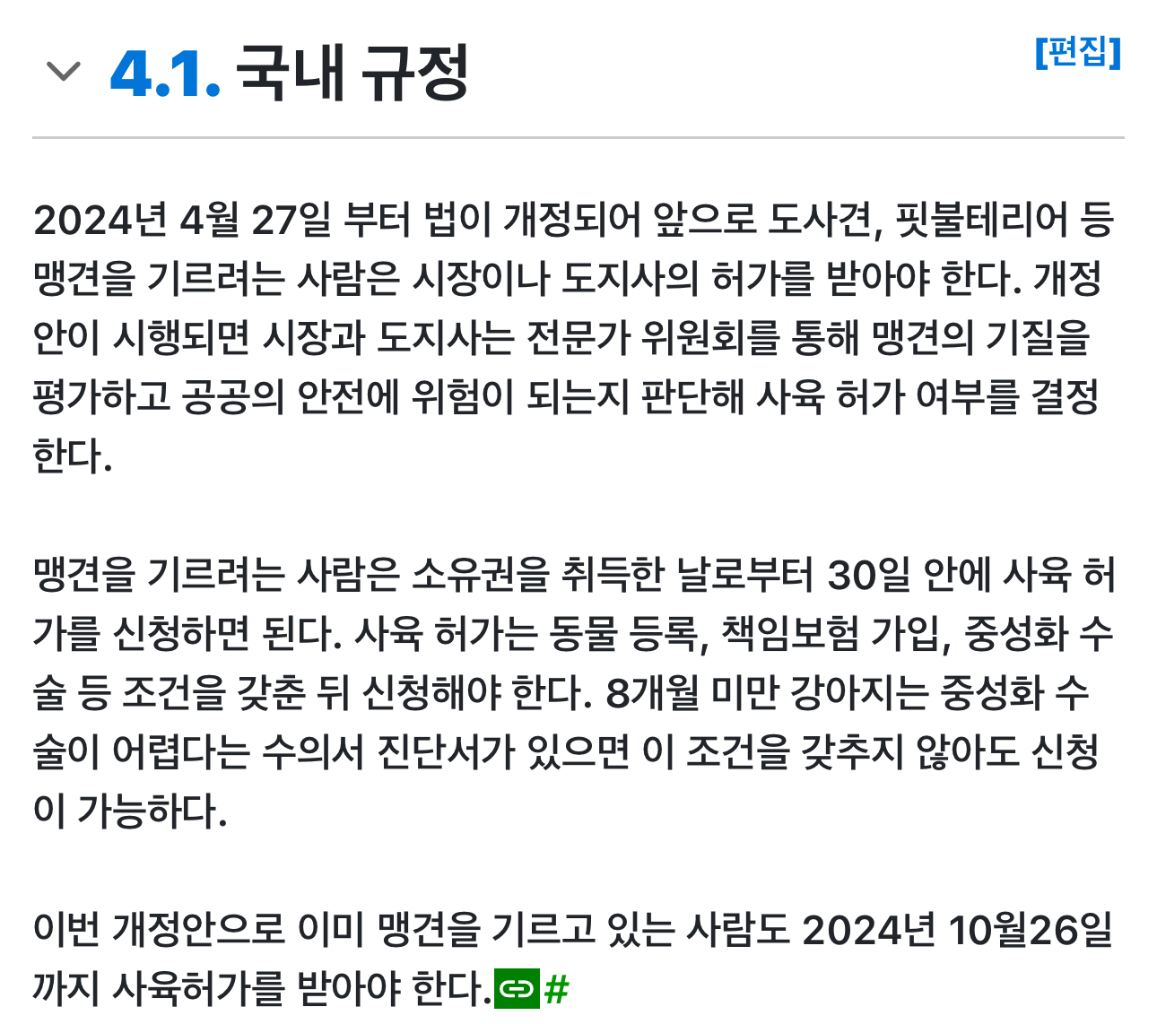 꺼라 위키 보니 사육 허가를 받게 되어있네 근데 오늘 허가도 안 받고 아들이 키운 핏불에게 그 모친이 물려서 사망한 사고 발생함 | 25.10.17 20:57 | | |