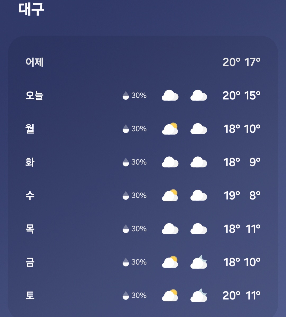 대구 어떠지 해서 찾아보니 대구는 10도 언저리