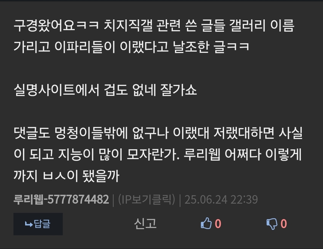이런 모욕글 해놓고선 오해? 좀 말해봐라. | 25.10.20 01:55 | | |