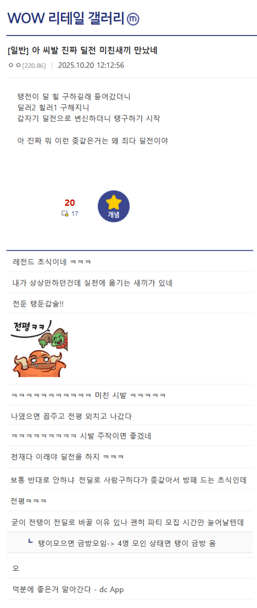 리치왕 처음 잡겠다고 리치왕에만 8시간 슈킹 했을때는 진짜 ㅋㅋㅋㅋ | 25.10.22 12:12 | | |