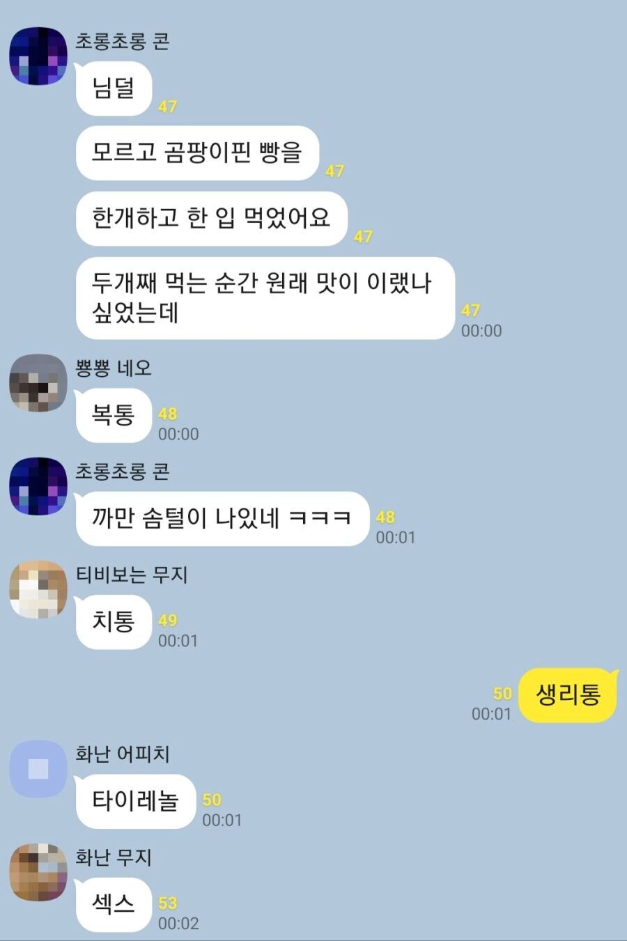빵에서 곰팡이가 보이는 부분은 이미 내가 여기있는 거 다 쳐먹었음, 이란 표시입니다. 이미 퍼질대로 퍼져있단 소리. | 25.10.24 13:09 | | |