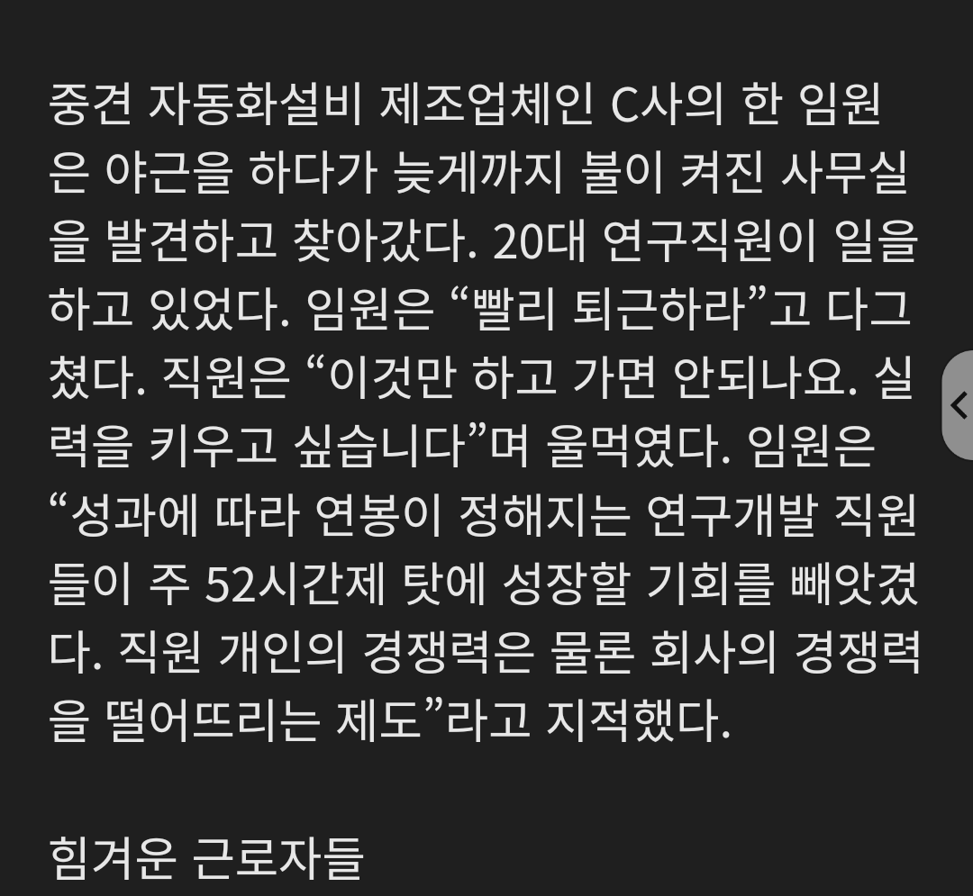 실제로 현장직 일부는 일하는 시간 = 돈 이기 때문 이래서 기본소득과 최저임금 상승 밑 전체적 임금 상승이 필요함 | 25.10.25 08:35 | | |