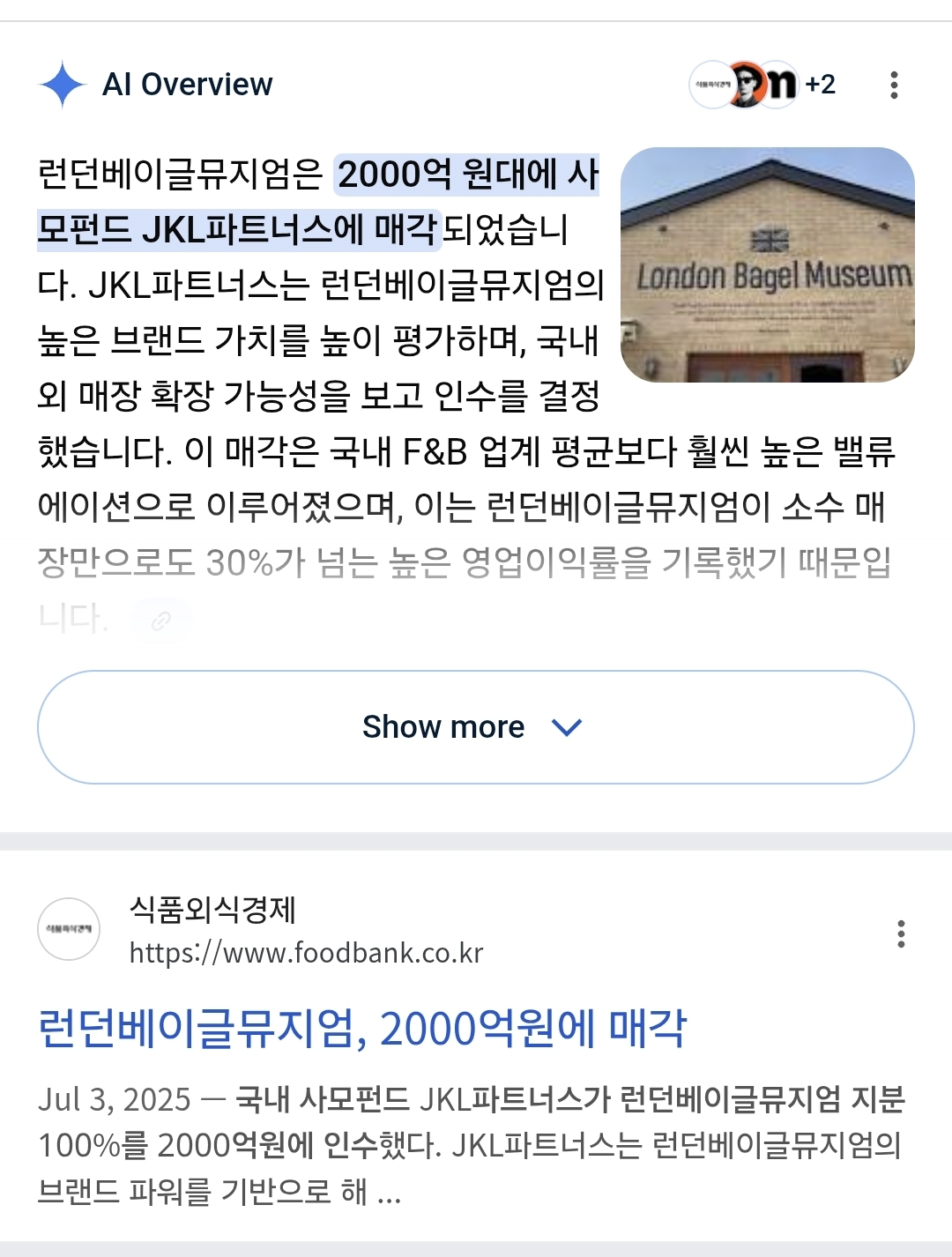7월에 사모펀드 매각. 경영진은 일단 그대로였고 | 25.10.27 19:59 | | |