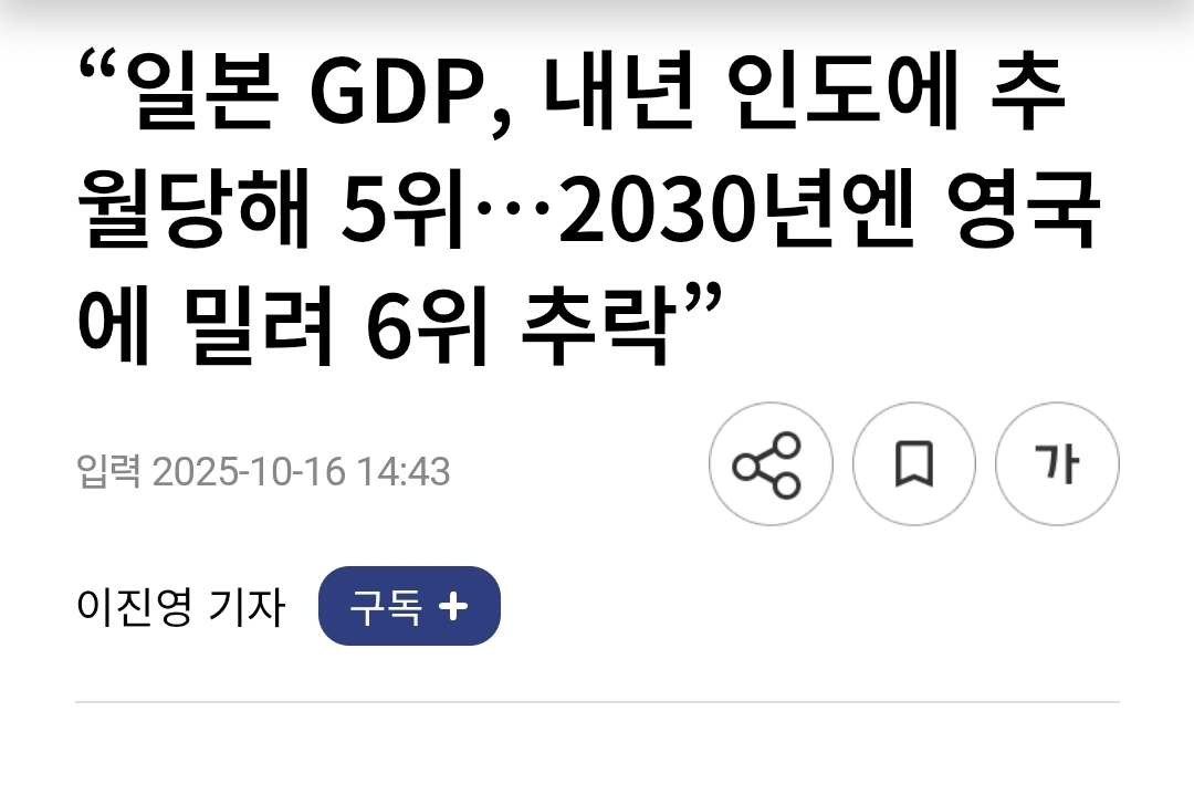 5위라는 건 내년 일본 gdp 추정치 ㅇㅇ | 25.10.28 05:35 | | |