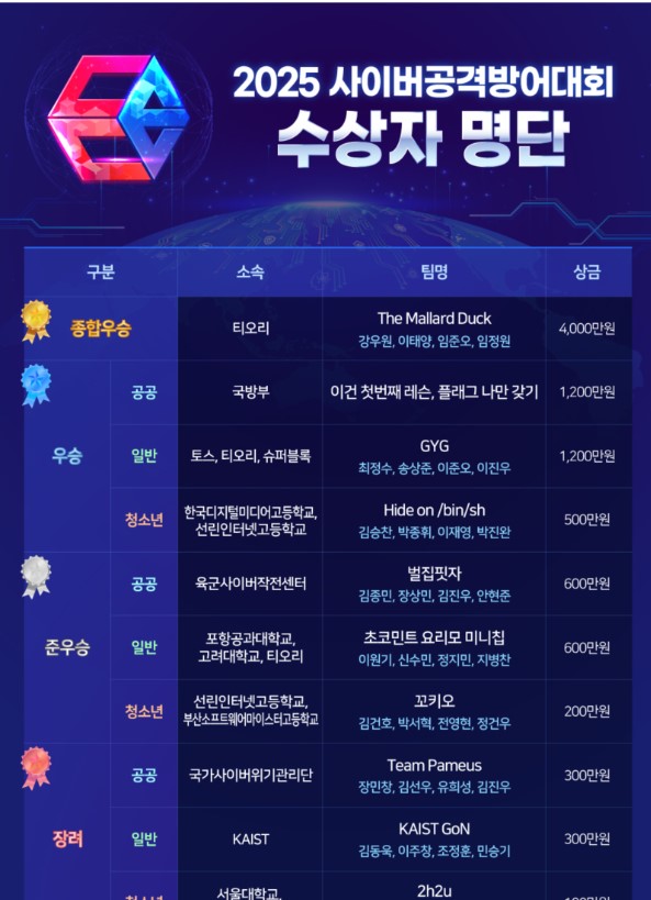 근황이라길래 찾아보니 수상까지 다 끝났네 국정원상 4천만원이나 줬구만