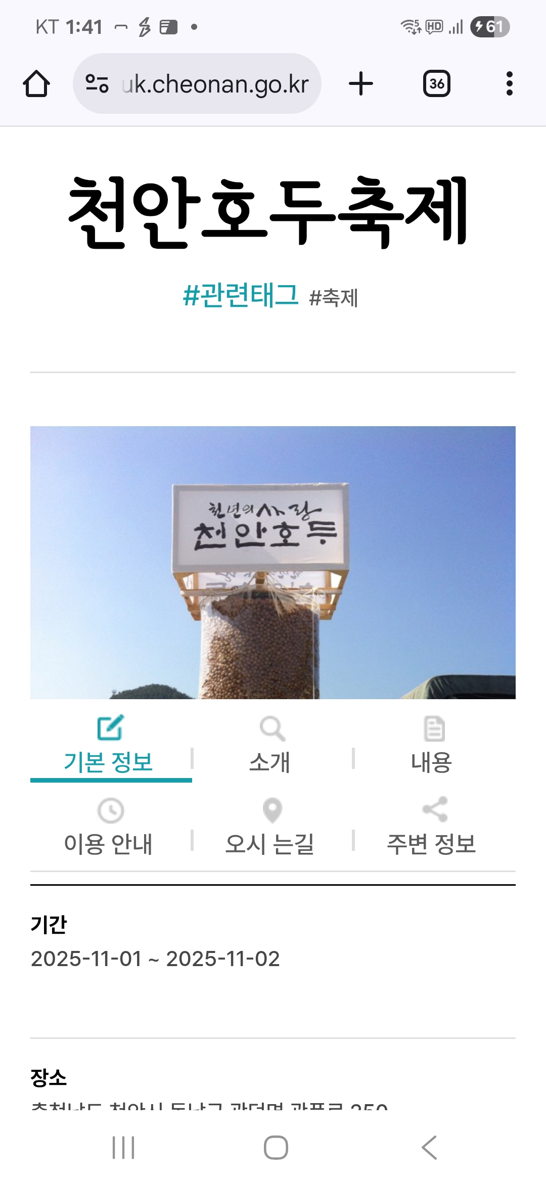 천안 호두과자 축제는 모르겠는데 호두 축제는 하고 있다. 올해는 11월 1~2일임