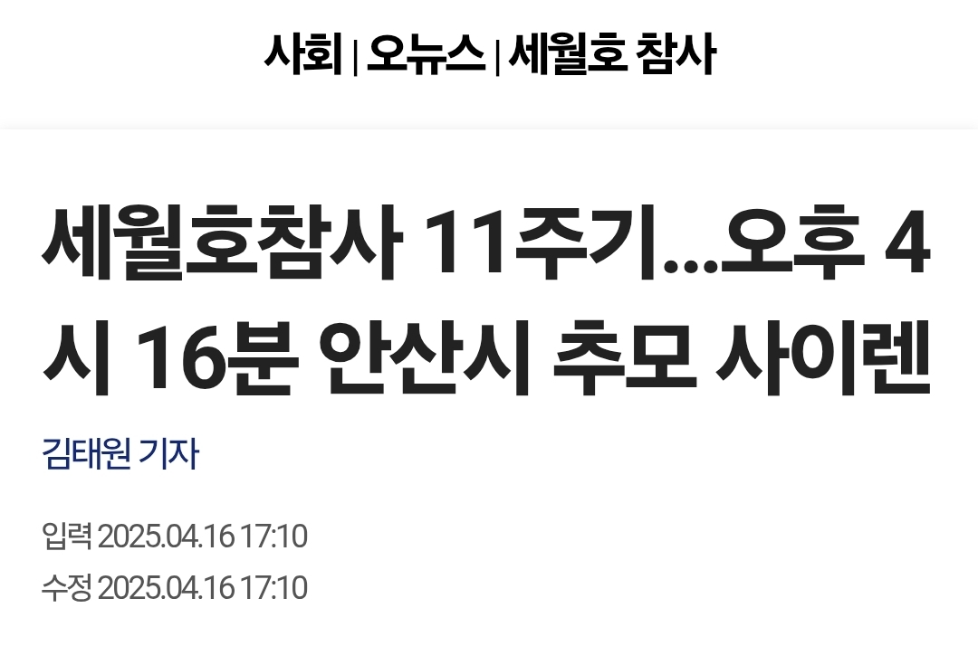 위에 안산시 사례를 보고 다른사고들도 따로 추모의 의미를 가진 그런게 있다는건 알곤 있는데 내가 말하고자 했던건 굳이 전국민에게 문자보내가면서 추모의 시간을 가집니다 라는 걸 행할정도였으면 굳이 하나의 사고에 대해서만 하지말고 다른 사고의 희생자 모두를 추모할수있게 하는게 좋지 않았을까 그런거임 | 25.10.29 10:03 | | |