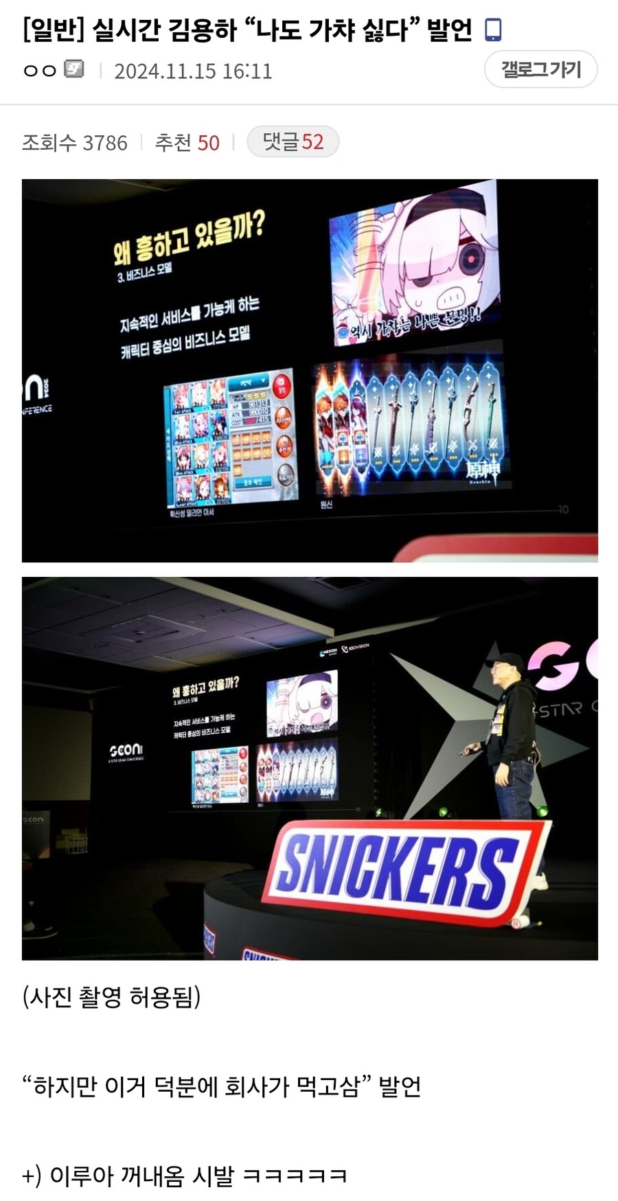 뭐 현실성도 있긴하니까 김용하도 가챠는 싫어한다고 하지만 가챠게임 개발하니. 솔직히 싫긴하면 그냥 은퇴 해도 평생 먹고 살 돈은 있을거 같긴한데 게임 좋고 개발 좋고 하지만 방향성이 뭔가....