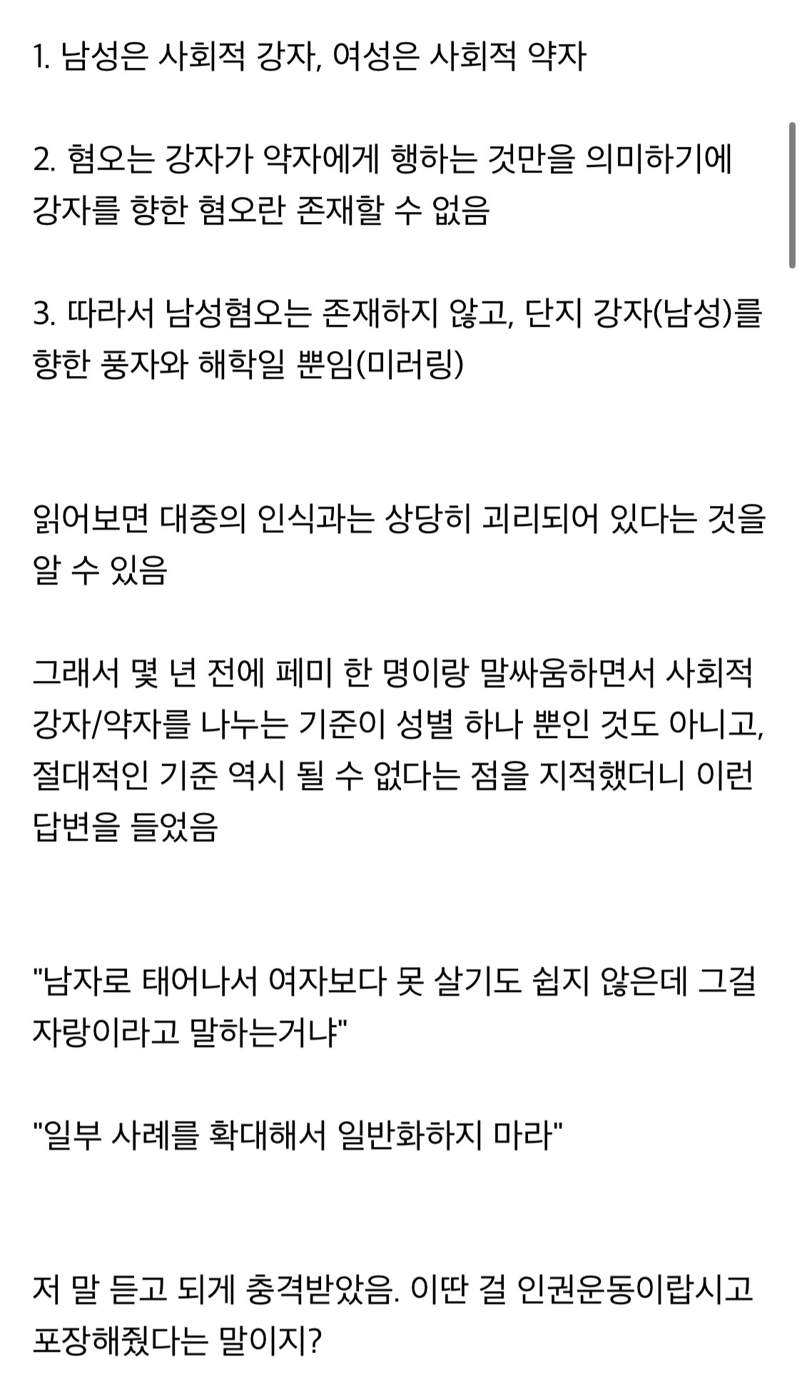 페미는 둘째치고 여성 이라는 단어만 나오면 발작하는 애들이 한트럭은 나와서 왜이렇게 됬나 싶다 밖에 나가보면 대부분의 여성들은 괜찮던데 소수가 너무 목소리를 크게 내는거 같아 | 25.11.05 03:15 | | |