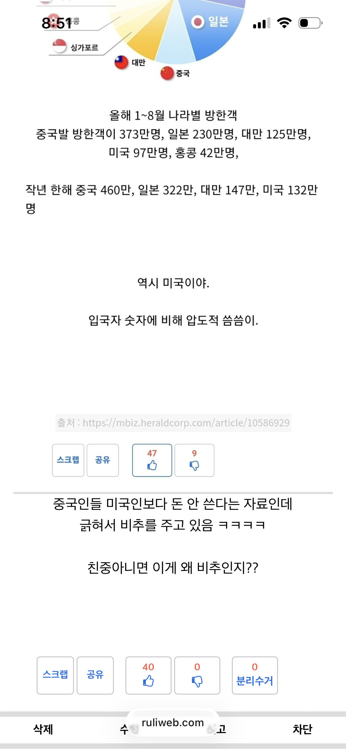 “비자카드” 기준으로 집계된 통계 가지고 해외관광객이 한국에서 쓴 금액 선동질하다가 걸리니 “왜 여기에 반박하지? 님 친중임?” ㅇㅈㄹ하는 동네가 바로 위에 있으니 ㅋㅋㅋㅋ