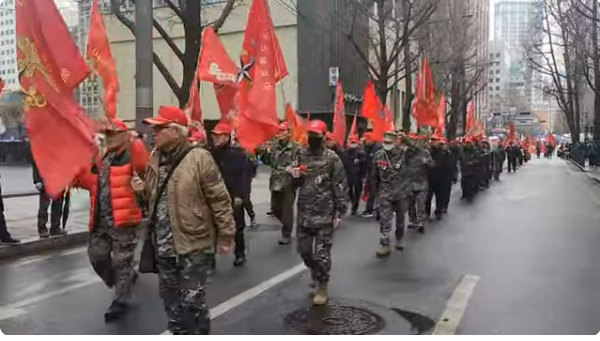 근데 국방무늬에 붉은깃발들면 코스프레 행진이어도 놀랄거 같은데