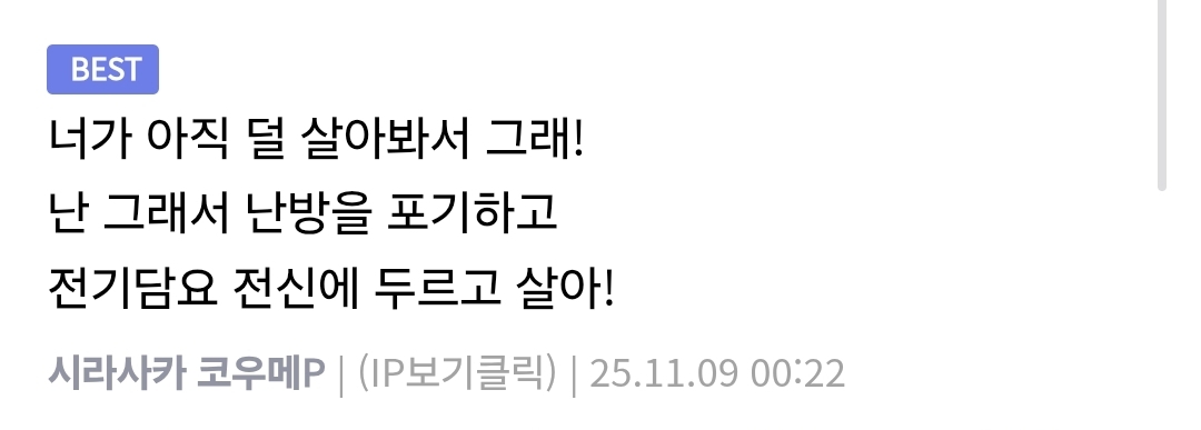 전기담요 용사여..가끔은..난방을 키시길.. | 25.11.09 00:25 | | |