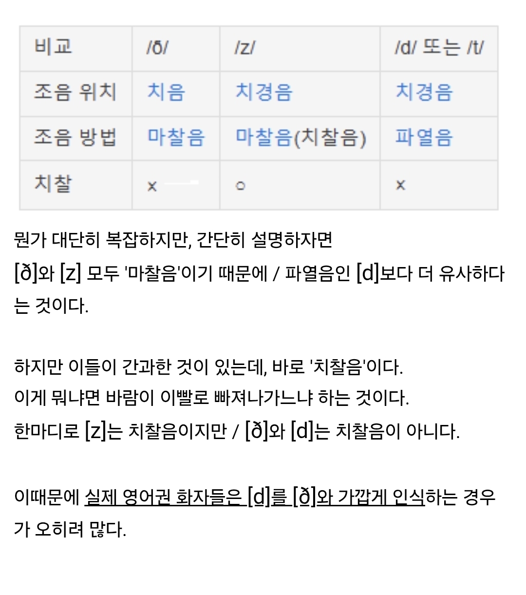 더도 자도 아닌데 사실 메이저한 언어에서 영어밖에 안 쓰는 th발음이 문제임