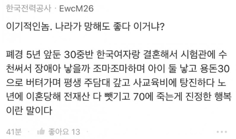 결혼 안한걸 타박하려는거지 "왜"에는 관심이 없거든