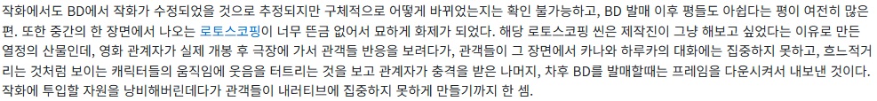 솔직히 저런 사연이 있었다면 나댔다고 평가하고싶어.. 보는사람은 장면번호로 구분하는게 아니라 한편을 통째로 보는데말야 | 25.11.10 04:26 | | |