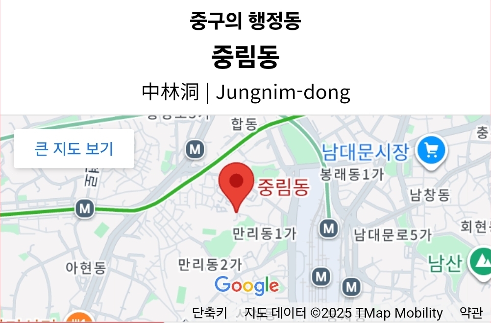 그리고 "중" 구에 있는 "중" 림동도 있다 ㅋㅋㅋㅋ | 25.11.10 11:30 | | |