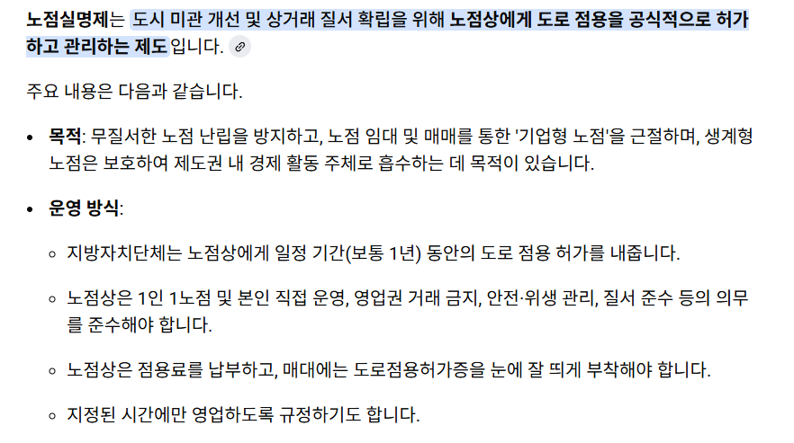 전쟁으로 박살난 경제시스템 하에서 먹고 살 길이 없으니까 일부러 제도에 구멍을 냅둔거. 로 시작된건데 여전히 그런 취지로 냅두고 있기는 하다. 떡볶이 , 붕어빵 , 닭꼬치 이런건 웬만해서는 단속 잘 안하고 단속 해도 일정 다 통보 하고 단속함. | 25.11.12 23:45 | | |