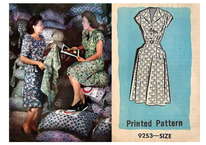 미국에서도 절대 다수가 가난해졌던 대공황이나 물자 자체가 부족해졌던 2차대전 때 밀가루 포대로 옷 만들어 입던 일이 있었음. 그걸 보고 밀가루 회사들도 아예 포대 자루에 옷감 패턴을 넣고 회사 마크를 줄인다던지 하는 식으로 옷감으로 쓰기 편하도록 포장을 바꿔서 판매 증가를 노렸고.