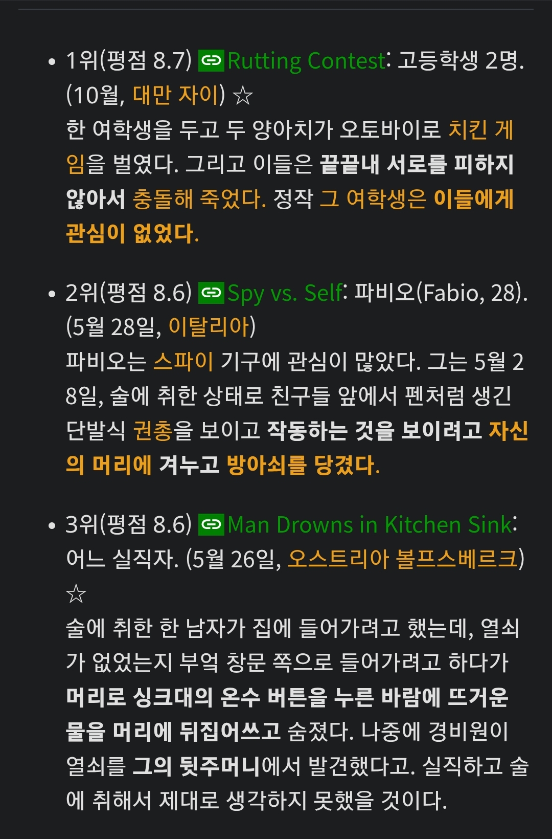 술먹고 집 열쇠 분실해서 부엌창문으로 넘어가다가 싱크대에 수도꼭지 잘못 건들여서 최고 뜨거운물이 계속 쏟아져서 삶아죽음 열쇠는 뒷주머니에 있었음