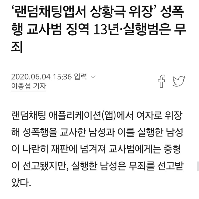 그니까 이 사례는 여자로 위장해 교사했는데 저 사례는 아직까진 교사까진 확실하지 않다는거임 사진, 주소, 번호 등을 봤다고 하잖음 무죄받으려면 일단 톡 정도는 해야할거임 | 25.11.14 16:19 | | |