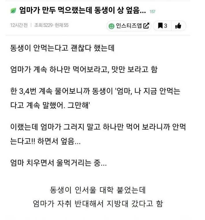 자취에 드는 돈을 지원 할 수 없는 상황이었겠지. 돈이 없는 상황을 오래 겪다보면 동생이 알바라든지 과외 하면서라도 어떻게든 인서울 졸업장 따서 얻는 가치에 대해서 생각을 못하고 당장 눈앞의 지출밖에 못보게 되는거지 | 25.11.15 10:51 | | |