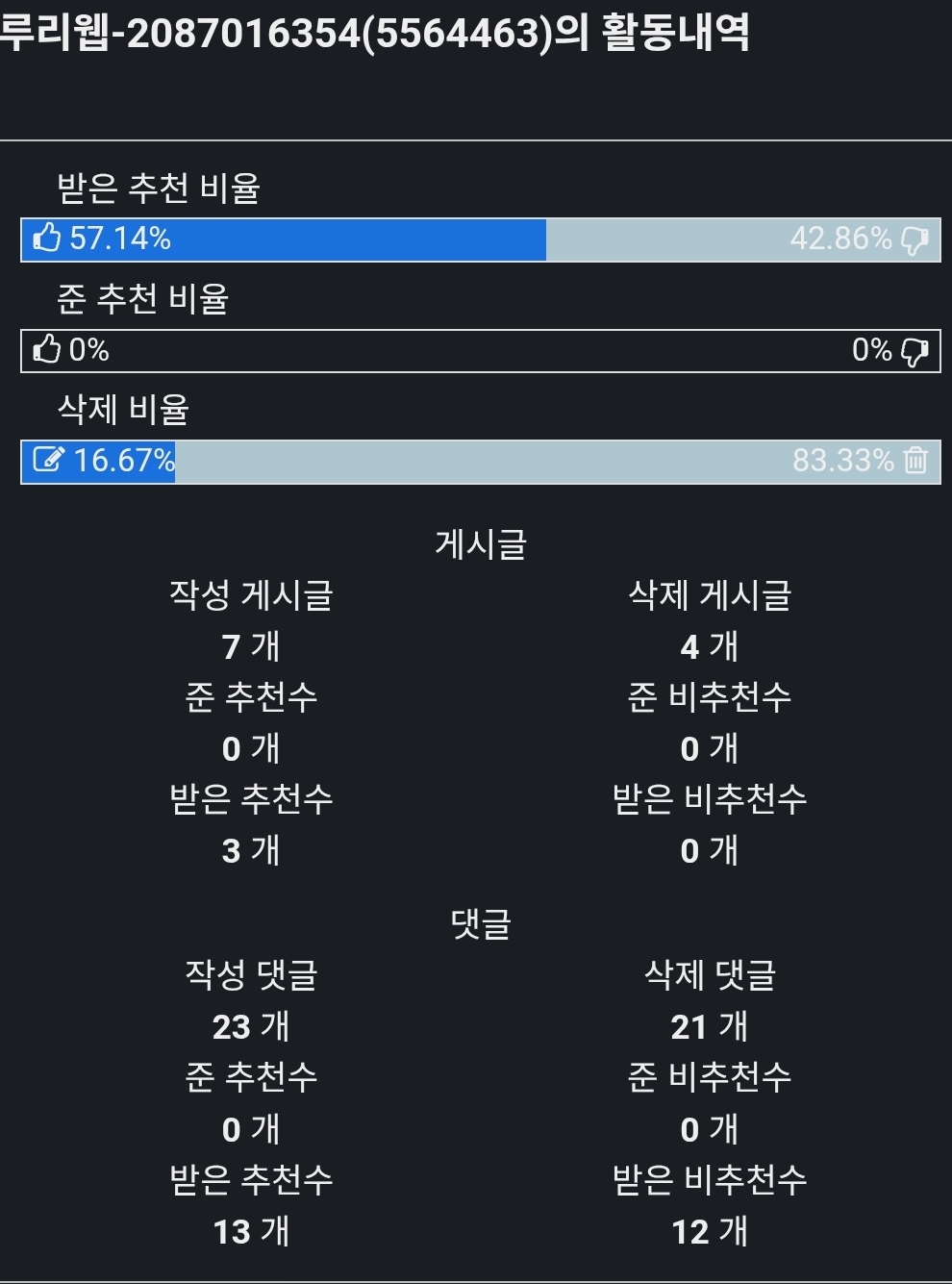 활동내역 클린하다 무지성 여혐할려고 계정팠어? | 25.11.16 09:52 | | |