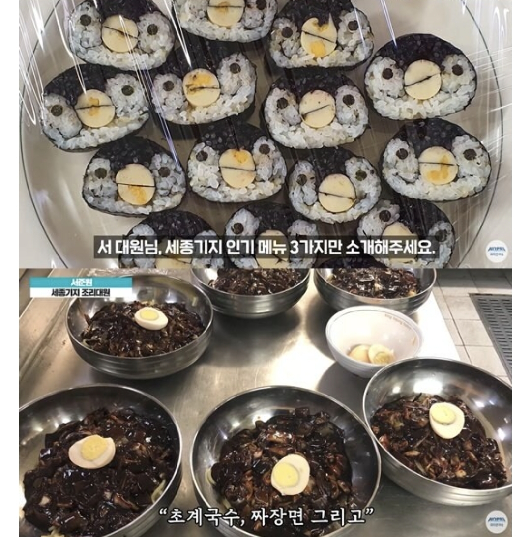 남극 다이묘) 아 그렇게 음식하면 안돼쥬~ 자자 어묵 듬뿍 드러간 한국적인 김밥 팍팍 드시니 고향 생각나쥬? 디저트로 달고나도 드릴게유~