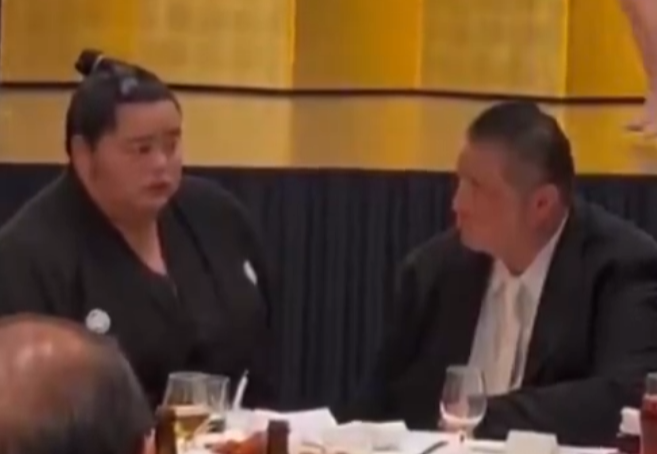무대에서 T팬티 댄스극이 벌어지고 있는데 제일 앞에 있는 아저씨 둘은 심각