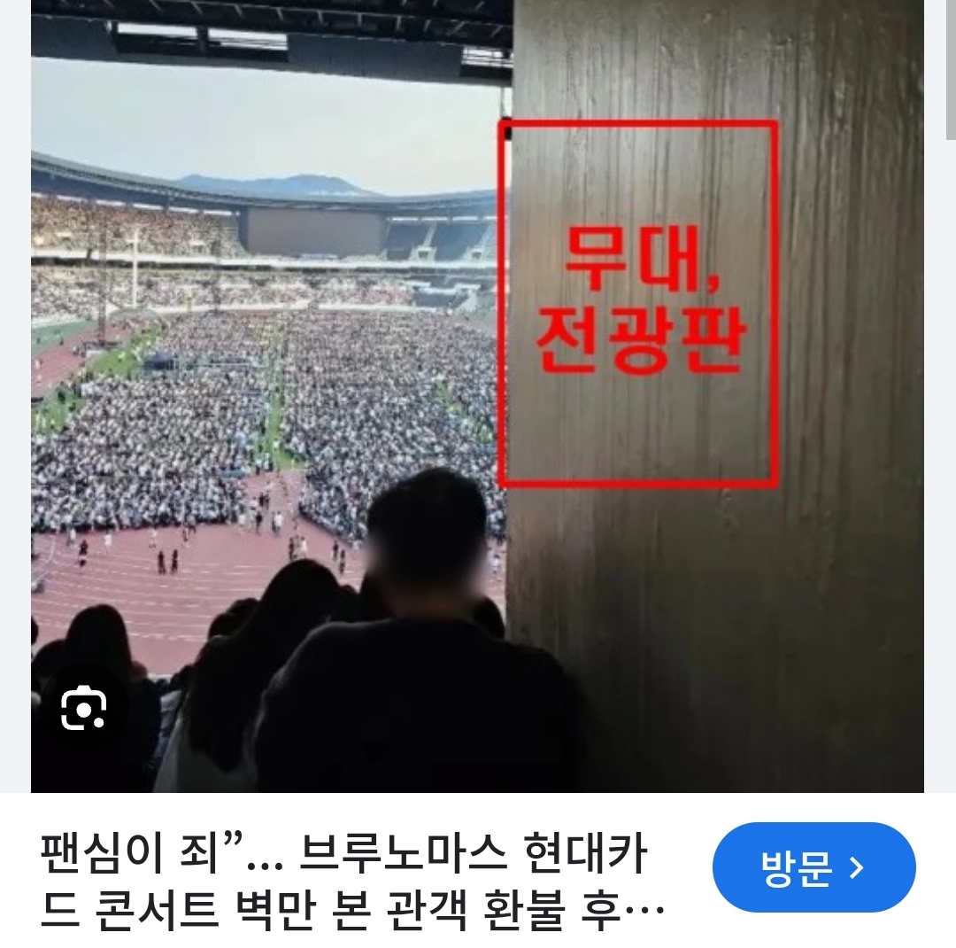 브루노 마스 왔을때 벽뒤에 가려서 1도 안보이는 죄석있었는데 환불해줬을걸