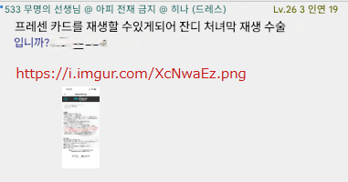 | 12605158 | 카제나)"요즘 제가 남혐이라는 소리가 들리는 것 같군요" (14) | 검수되지않은괴계정 | 54 | 3824 | 18:05 |