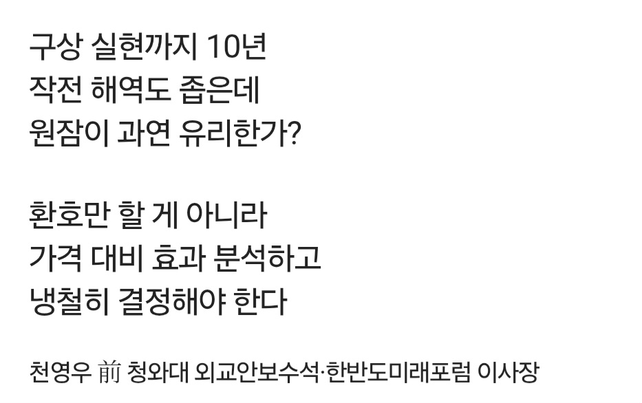 근데 저 기고문은 팩트 시트를 가지고 쓴 것이 아니라 진짜 우리나라 작전지역에 효율적인지 의문제기함. | 25.11.18 18:25 | | |