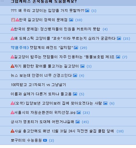 원래 한페이지 넘게 캣맘글만 올려댔는데 어느순간 삭제하더니 다시 또 이런글만 올리네