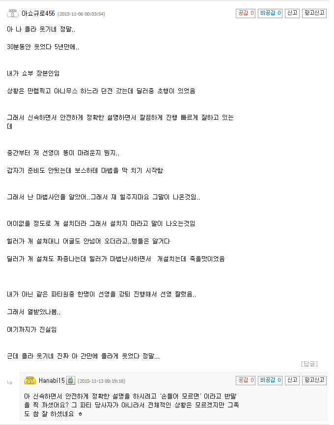 짤에 없는 앞부분 상황에서 탱커가 힐러한테 먼저 ㅂㅅ아 설치지 말라고 욕박은거라 매너적으로 할말없긴함 설치지 말라고 한것도 힐러가 공략 FM으로 하려는거보고 그렇게 말한거라 ㅋㅋ 그래서 짤에서 힐러가 공략 모르고 왔으면 닥치고 하라고 하는거 | 25.11.19 02:55 | | |