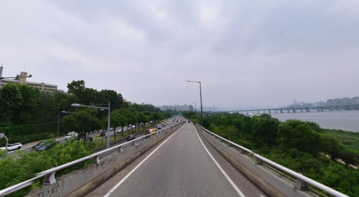오른쪽으로 꺽는 올바른 선택을 한자는 오른쪽으로 한강을 보며 돌아올수 있다.
