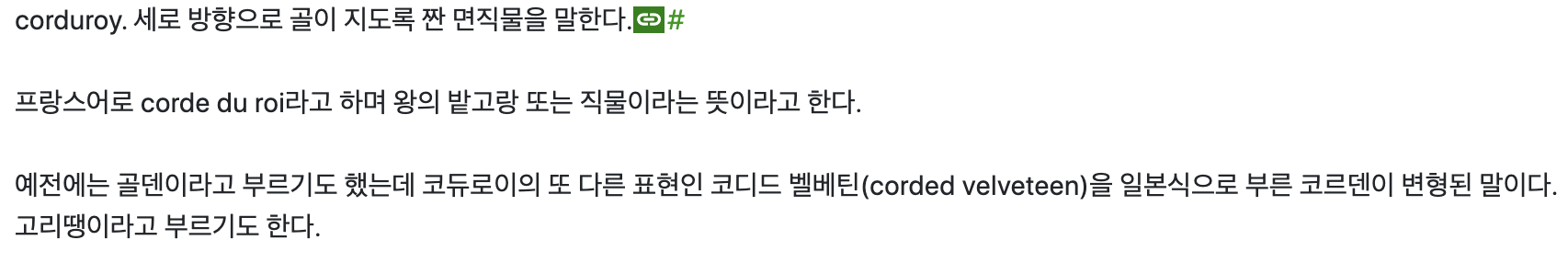 코로듀이 -> 코르덴 -> 골덴 | 25.11.20 09:16 | | |